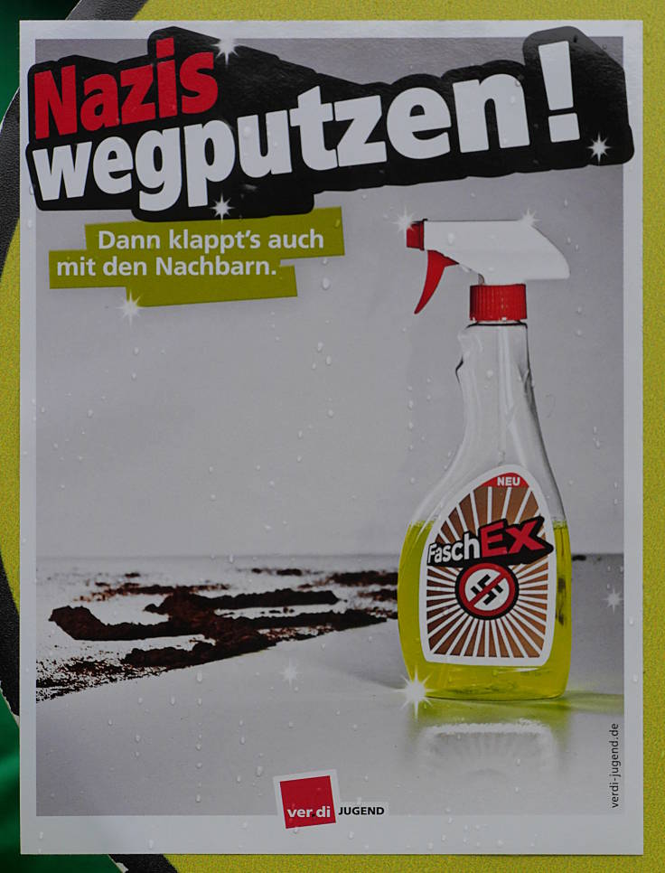 Plakat: Nazis wegputzen! Dann klappt's auch mit den Nachbarn. 'Neu – FaschEx' – ver.di Jugend[50, 51]