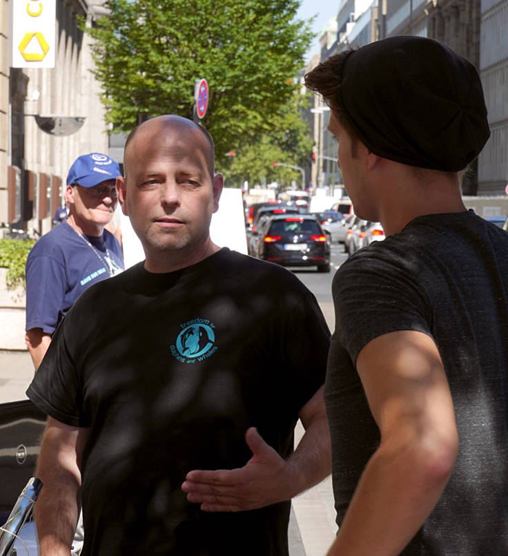 Christoph Küppers[2, 3, 4, 5] informierte die Passanten über das Anliegen der Demonstranten