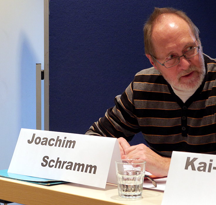 Joachim Schramm (Landesgeschäftsführer der DFG-VK NRW[10]) hielt die Einführungsrede, begrüsste die Gäste und stellte die Referenten vor.