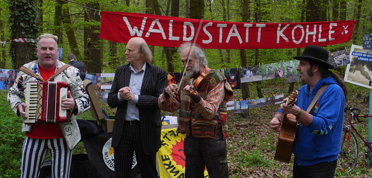 Banner: Wald statt Kohle (mit Aktivistenfahrrad ;-) )