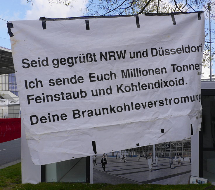 Transparent: Seid gegrüßt NRW und Düsseldorf – Ich sende Euch Millionen Tonnen Feinstaub und Kohlendioxid. Deine Braunkohleverstromung