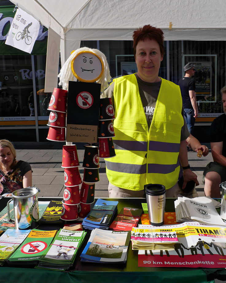 Das Kaffeebecher = Waldkiller-Männchen am Stand des Robin Wood e.V.[96, 97, 98, 99, 100, 101, 102], ...