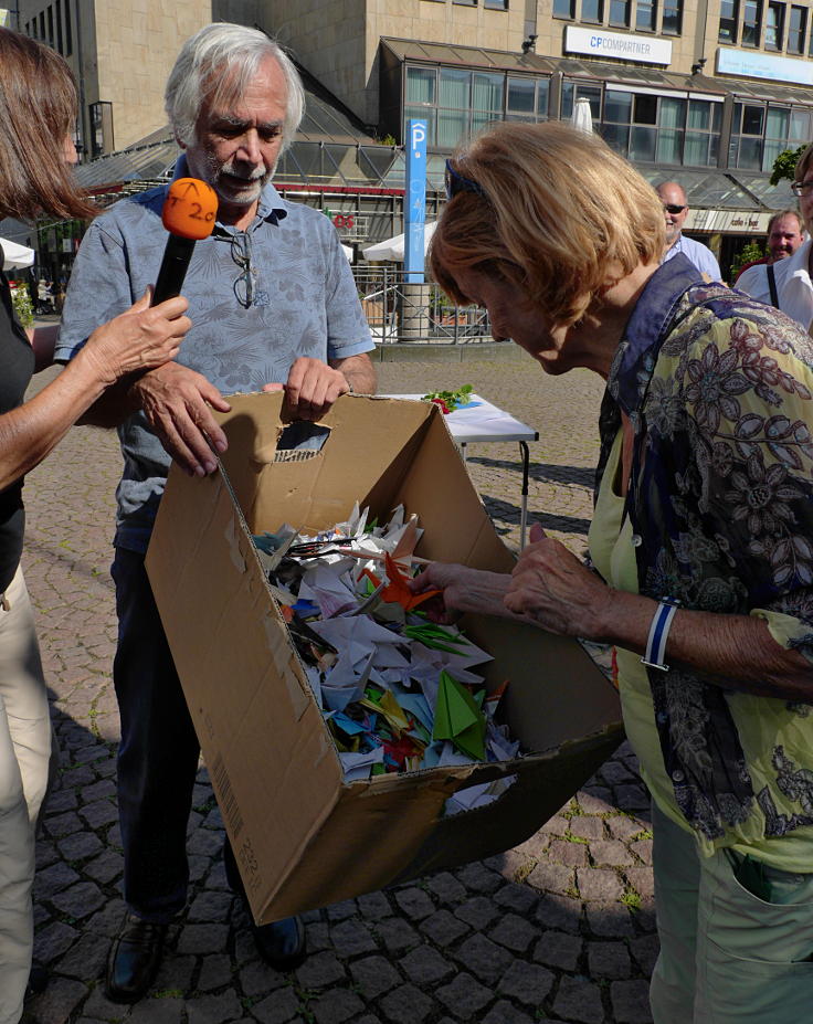 Verteilung von Origami[52]-Kranichen[53, 54] als Friedenssymbol