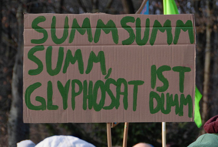 Schild: SUMM SUMM SUMM, GLYPHOSAT[78, 79, 80, 81, 82] IST DUMM