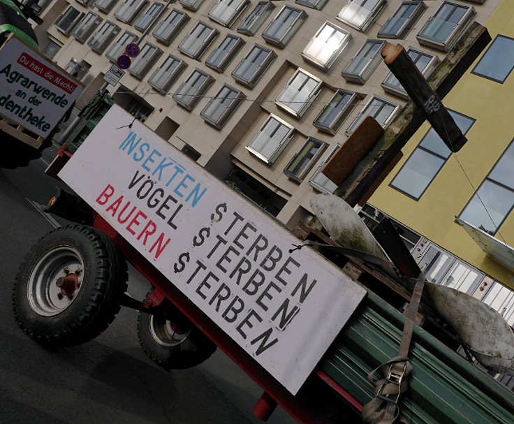 Schild: INSEKTEN STERBEN – VÖGEL STERBEN – BAUERN STERBEN[161]