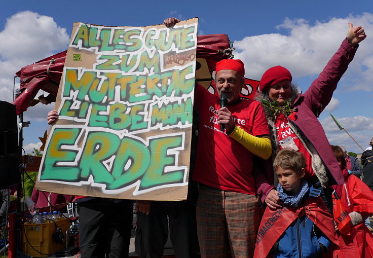 - Todde zeigte das Muttertags[51]-Plakat für Mama Erde und appellierte an die Bundesregierung, den Hambacher Wald endlich zum Flora-Fauna-Habitat[52, 53] zu erklären. Anschließend lud er zum Besuch von Ende Gelände[54, 55, 56, 57, 58, 59, 60, 61, 62, 63, 64] ein und erwähnte seinen Prozess, da er angeblich Hausfriedensbruch[65, 66, 67] begangen haben soll. (Update: Er wurde – wie zu erwarten war – inzwischen frei gesprochen.)