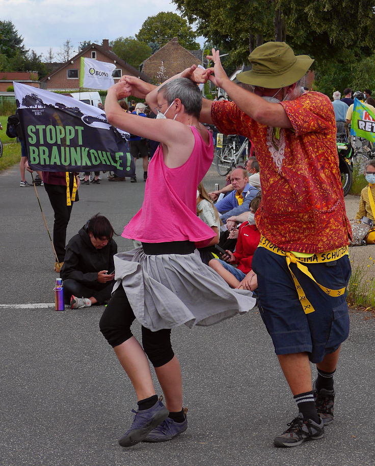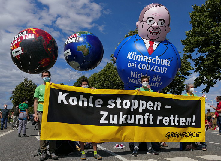 Rund 2500 Menschen demonstrierten[1, 2, 3, 4] am Tagebau Garzweiler II[5, 6] mit einer Menschenkette zwischen Lützerath[7, 8, 9] und Keyenberg[10, 11] für den Kohleausstieg[12, 13] und forderten den Erhalt der bedrohten Dörfer und die Einhaltung des Pariser 1,5°C Klimaziels[14, 15] ein. Im Schatten der aktuellen weltweiten Klimakatastrophen (u.a. die Hitzewelle in Kanada[16, 17, 18, 19, 20, 21] und die medial noch weniger beachteten erneuten[22] riesigen Waldbrände in Russland[23, 24], die Unwetter in Süddeutschland[25, 26, 27, 28] sowie der Tornado in Tschechien[29, 30, 31, 32, 33]) sieht im Wahljahr[34, 35, 36] das Klimaschutzprogramm der Union[37, 38, 39] unvermindert jämmerlich aus – so dass nachfolgend der Anti-Kohle-Kette[40] vor rund 6 Jahren oder ähnlich der Kettenreaktion Tihange[41] (vor rund 4 Jahren gegen die belgischen atomaren Gammelmeiler Tihange 2[42, 43] und Doel 3[44, 45]) der Protest und der Zivile Ungehorsam[46, 47] immer noch vonnöten sind. Zudem wurde dem (Möchtegern-) Kohlekanzlerkandidat der Herzen klar gemacht, dass eine Energiepolitik[48, 49], die entsprungen ist aus und ausgerichtet ist auf das letzte Jahrtausend, in diesem Herbst konsequent abgewählt wird, weil sie keine Zukunft hat.