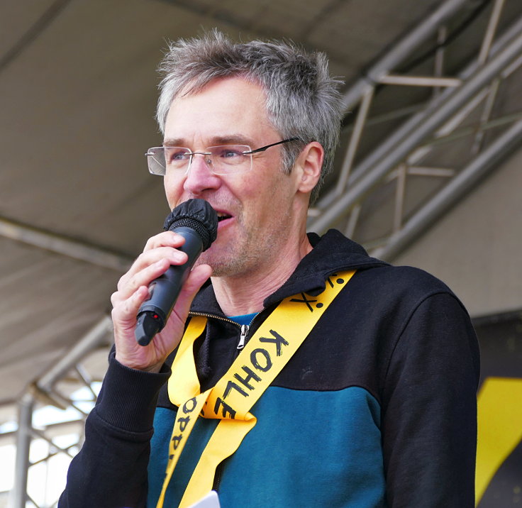 - Er äußerte ebenfalls seine Begeisterung über die 4km lange Menschenkette und kritisierte den – die Klimakrise ignorierenden – weiteren Betrieb der Kohlebagger sowie die CO2[166, 167]-Emissionen[168, 169, 170, 171] der umliegenden Kohlekraftwerke. Er kritisierte das Verbrechen[172] an der Landschaft, den Dörfern, dem Weltklima und den zukünftigen Generationen.