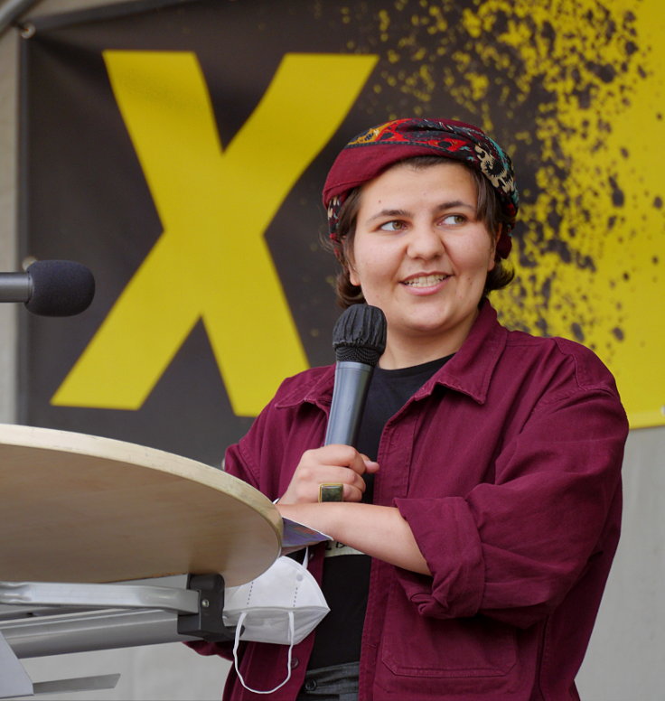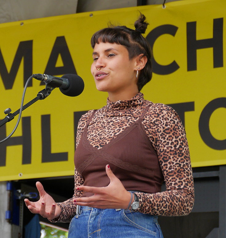 - Er erwähnte einige der letzten Naturkatastrophen und wies darauf hin, dass derlei Umweltgeschehnisse in den Ländern des globalen Südens schon seit Jahrzehnten passieren[281, 282, 283, 284, 285] und nannte einige Beispiele aus verschiedenen Ländern. Daher muss unsere Lebens- und Wirtschaftsweise grundlegend verändert werden[286, 287, 288, 289], statt weiterhin ein zerstörerisches System zu unterstützen. Deshalb seien die Aktivisten hier an diesem Ort, um ein gerechteres und solidarisches[290, 291, 292, 293] System aufzubauen.