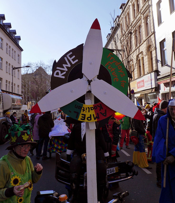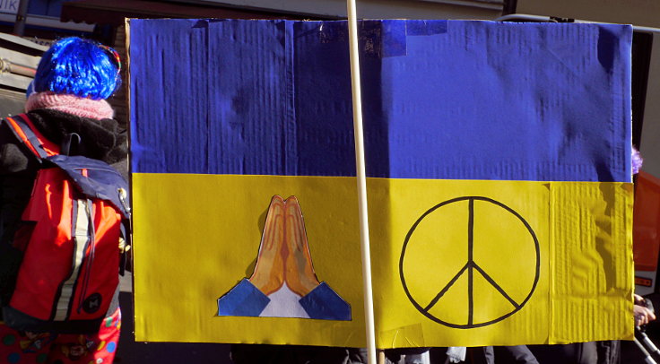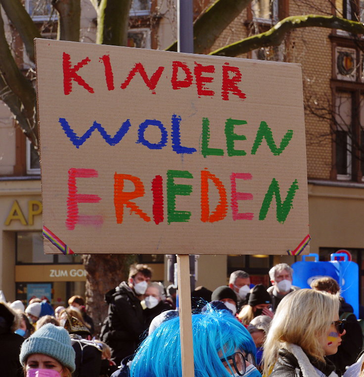 Aufgrund des völkerrechtswidrigen[1, 2] Überfalls auf die Ukraine durch Russland[3, 4, 5, 6, 7, 8, 9, 10, 11, 12, 13, 14, 15, 16] wurde kurzfristig der in Köln[17, 18, 19, 20, 21, 22] traditionelle Rosenmontagszug[23, 24] abgesagt[25, 26, 27], weil im Schatten des Krieges ein unbeschwingtes Feiern unmöglich und zudem unangemessen wäre und statt dessen eine Friedensdemonstration organisiert.[28, 29] Rund 250.000 (teils kostümierte) Menschen protestierten gegen diesen Übergriff von Russland auf die ukrainische Autonomie und forderten die sofortige Beendigung sämtlicher Kriegshandlungen. Nach dem Auftakt mit einigen Reden und einer musikalischen Untermalung, marschierte der Protestzug durch die Innenstadt bis hin zur Domplatte[30, 31, 32, 33, 34] am Kölner Dom.[35, 36, 37, 38, 39] Auf der Marschroute wurden an verschiedenen Plätzen 12 Wagen[40, 41] vom Kölner Wagenbau-Team Kritzelköpp[42] gezeigt.