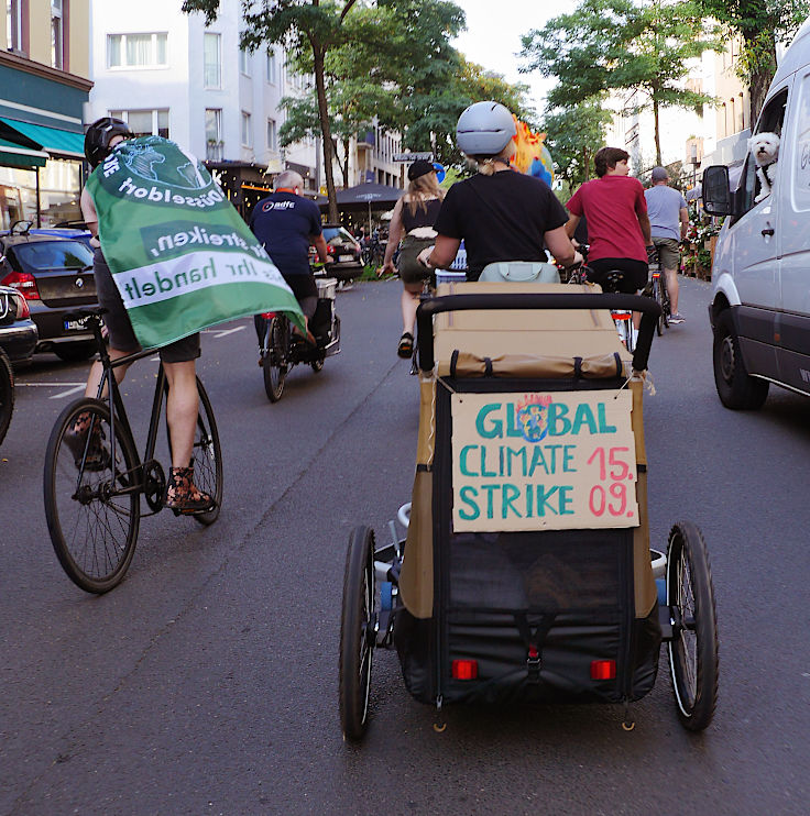 Als Einladung zur Teilnahme am 13. Globalen Klima-Streik[1, 2] #EndFossilFuels[3, 4, 5, 6, 7, 8] fuhren die Klimaschutz[9, 10, 11, 12]-AktivistInnen der Students for Future Düsseldorf[13, 14, 15, 16] zusammen mit einigen verbündeten Partner-Organisationen eine Mobilisierungs-Fahrrad-Demonstration durch die Stadt Düsseldorf. Da die Regierenden der Welt trotz der deutlich sichtbaren Auswirkungen der Klimakatastrophe[17, 18, 19] noch immer nicht vom Big Business[20, 21, 22, 23] mit den fossilen Klima-Zerstörern[24, 25, 26] lassen wollen und auch weiterhin die Verkehrswende sabotieren[27], gibt es am 15.9.2023 diesen 13. Globalen Klima-Streik.