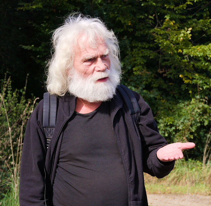 - Wie üblich fragte er in die Runde, wer zum ersten Mal bei dem Waldspaziergang dabei ist (worauf – wie üblich – einige Hände in die Höhe gingen!)