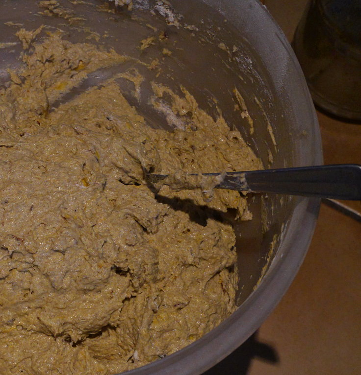 Dann kommen die Gewürze dazu (in diesem Fall etwas deftiger): Kurkuma[5] und Cumin[6]. Aber auch Körner, Nüsse oder geraspelte Möhren sind sehr schmackhaft.