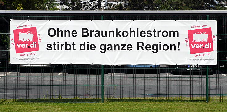 ver.di-Transparent: Ohne Braunkohlestrom stirbt die ganze Region!