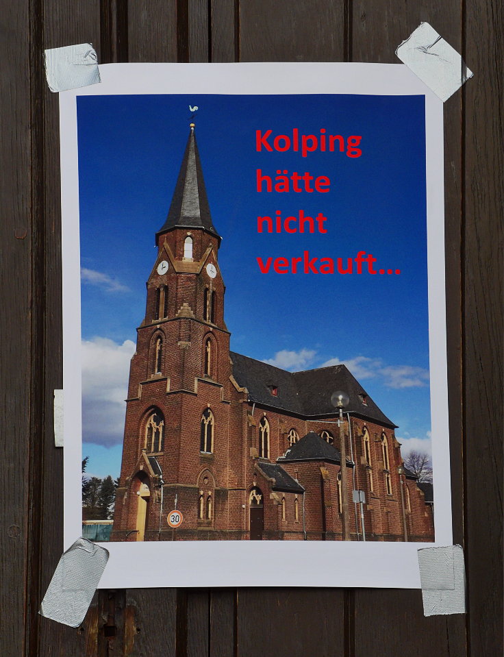 Plakat an der Kirchentür: Kolping[75, 76] hätte nicht verkauft...