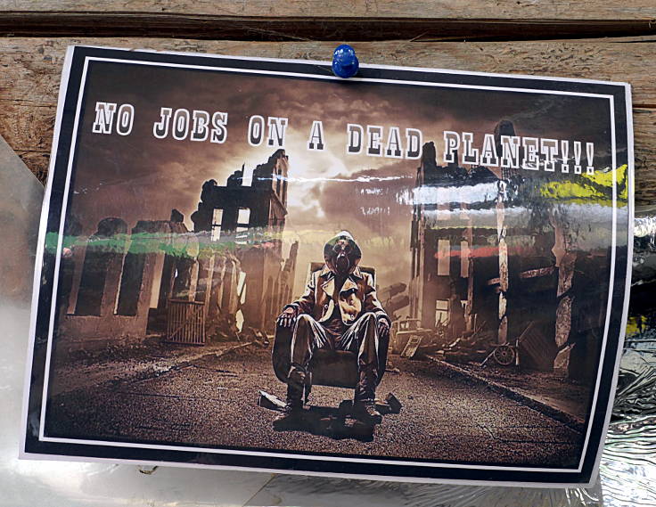 Postkarte im Wiesencamp des Hambacher Waldes[116, 117, 118, 119, 120]: NO JOBS ON A DEAD PLANET!!! (2016[121])- ∞ 2022/03/30: Im Krieg stirbt bekanntermaßen nicht nur die Wahrheit[64, 65] und die unbeteiligte Zivilbevölkerung, sondern möglicherweise auch diejenigen, die nicht minder unseres Schutzes bedürfen: die Tiere.[66, 67, 68, 69, 70, 71] Daher ist es sehr zu begrüßen, dass es AktivistInnen gibt, die sich während des laufenden Ukrainekrieges um die (mitgebrachten/geretteten) Sorgenfelle kümmern.[72, 73, 74, 75] Übrigens: Anne vom Star e.V. hat eine Liste zusammengestellt mit Tierheimen in der Ukraine[76], die dringende Unterstützung benötigen.